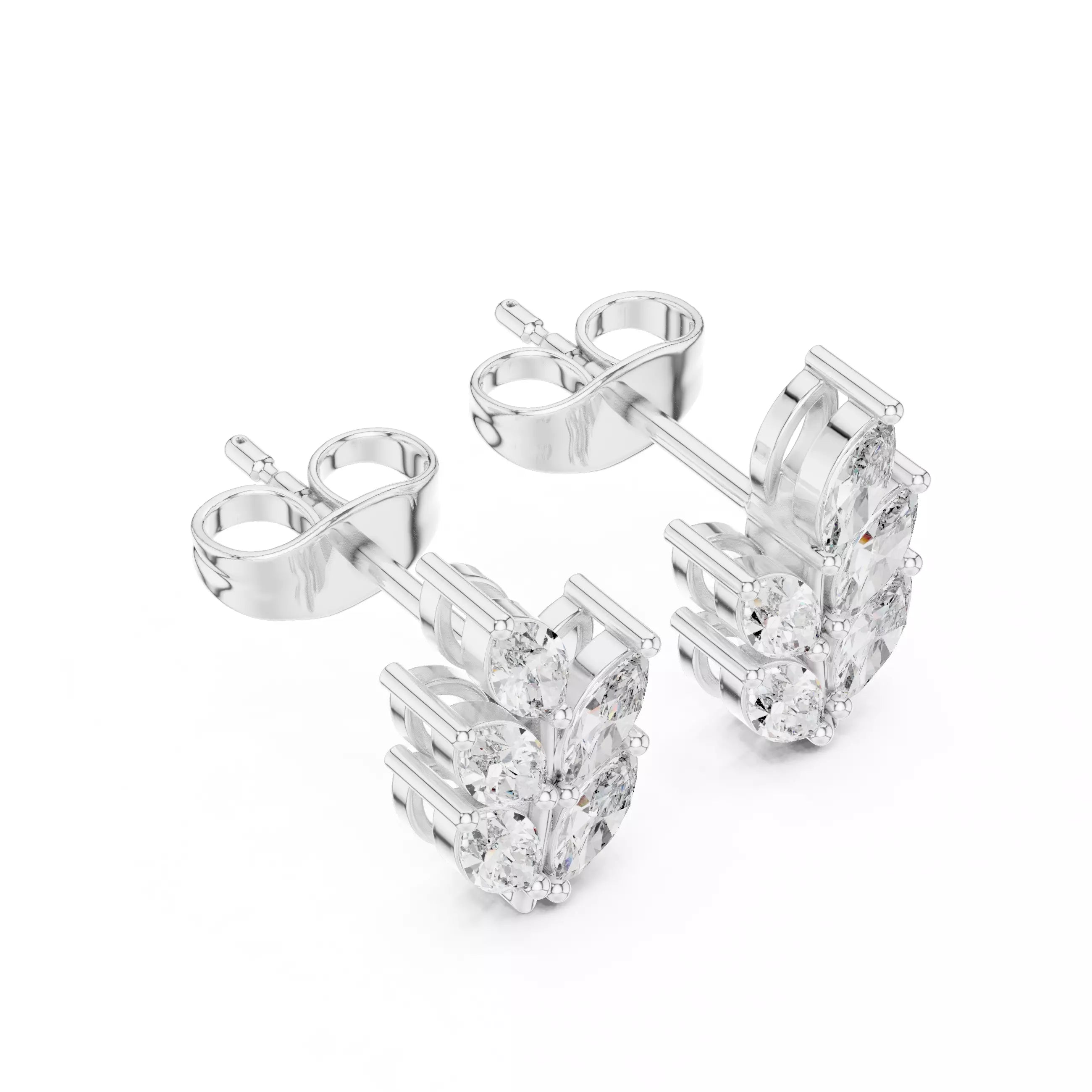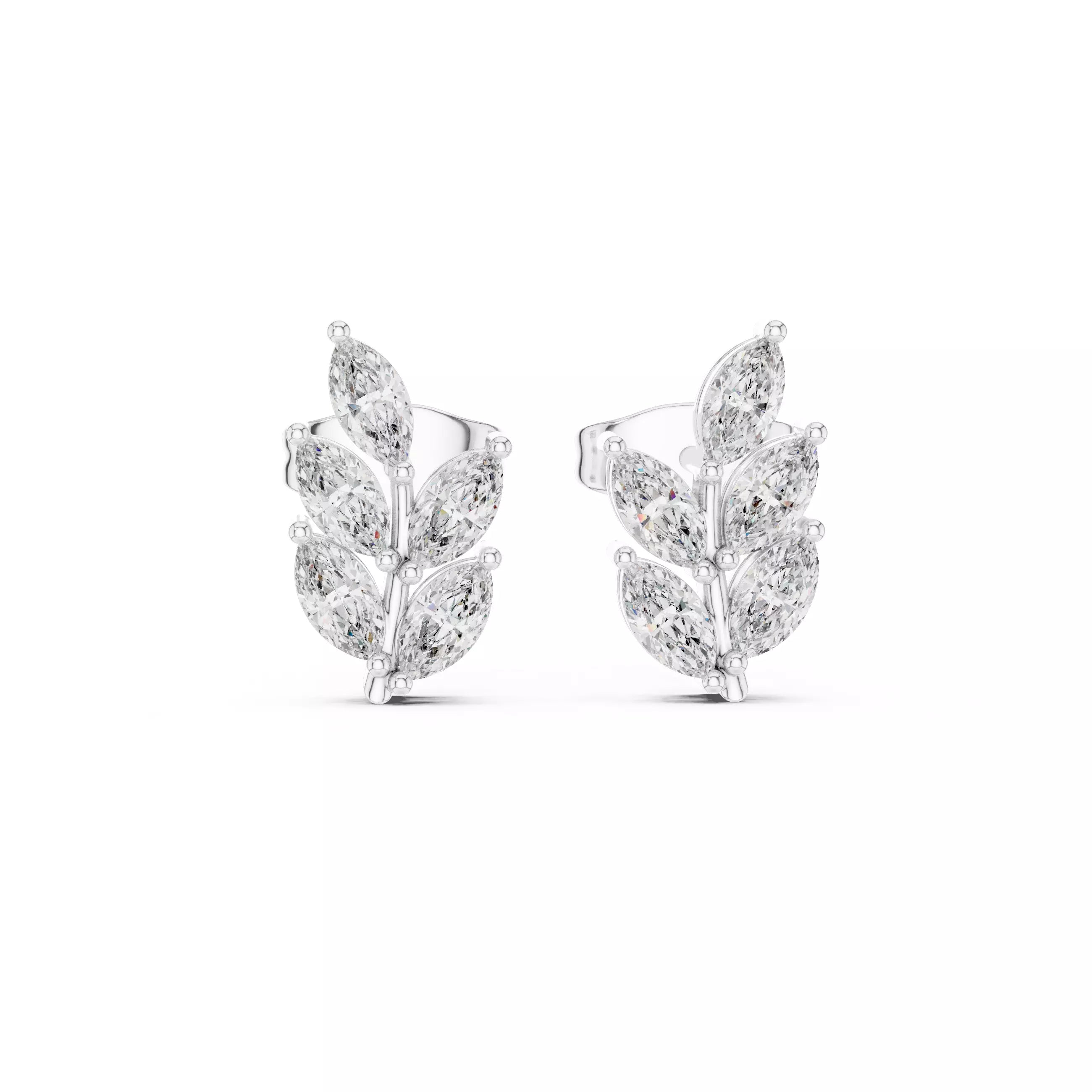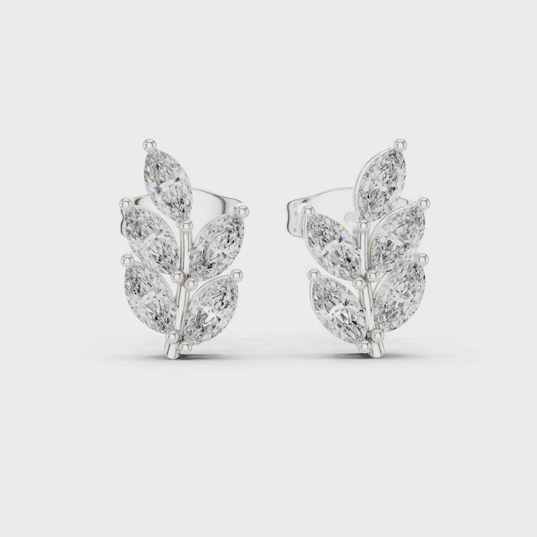 Folia – обеци с флорален дизайн и диаманти от 14К бяло злато
