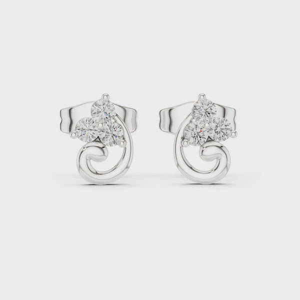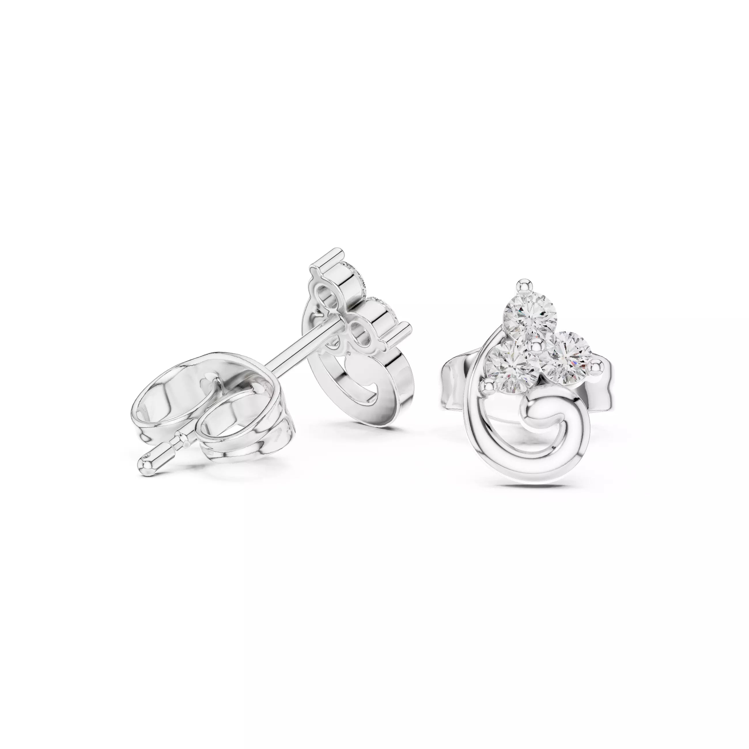 "Меката извита линия на модела създава плавно движение около ухото и придава жив силует. Кръглите диаманти в горната част концентрират светлината в чист тристепенен блясък, който остава ярък и дълбок."