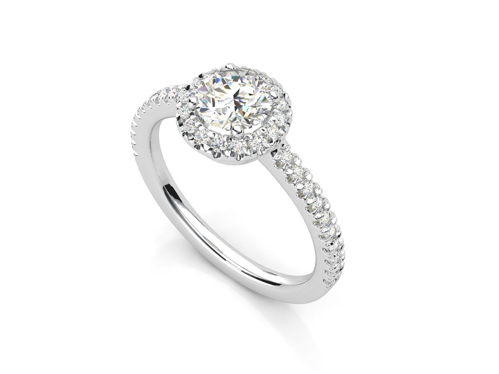 Aureline – годежен пръстен с диамант 0.65 ct и нежен ореол от диаманти в 14К бяло злато