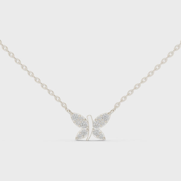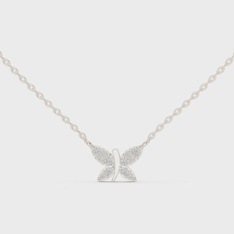 "Ефирният силует на пеперуда разгръща симетрични крила, в които малките диаманти проблясват като утринна светлина. Формата стои фино и центрирано, създавайки усещане за лекота и движение при всяка стъпка."