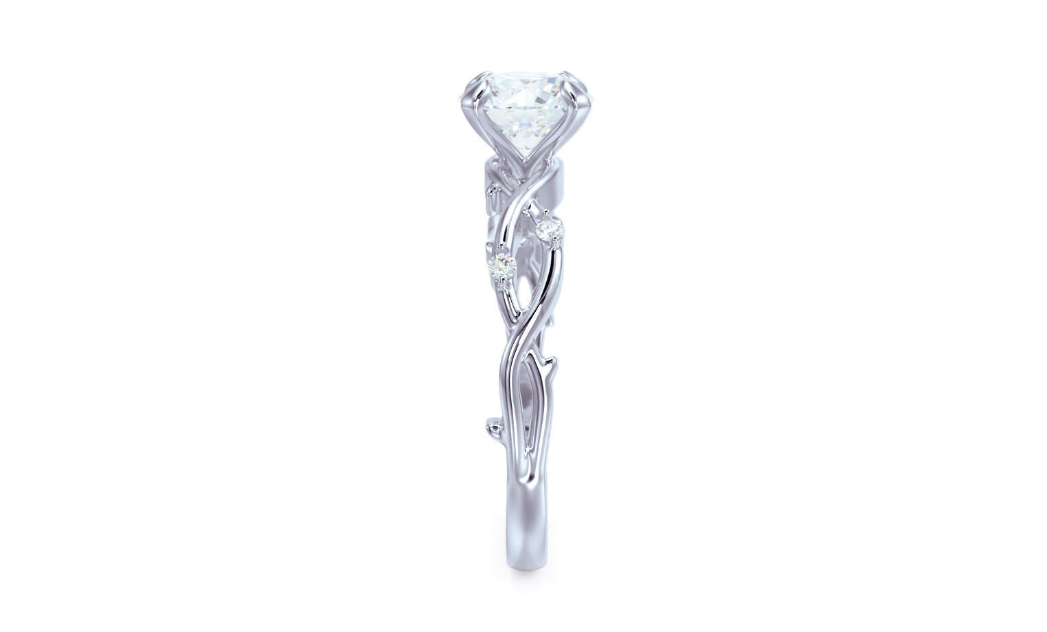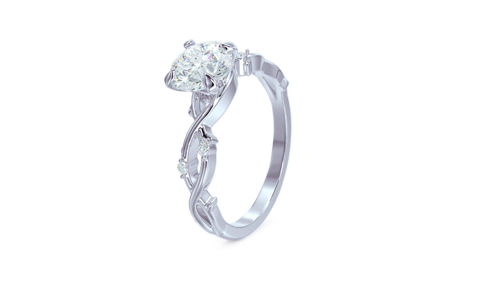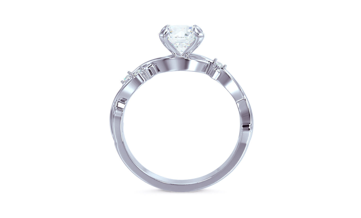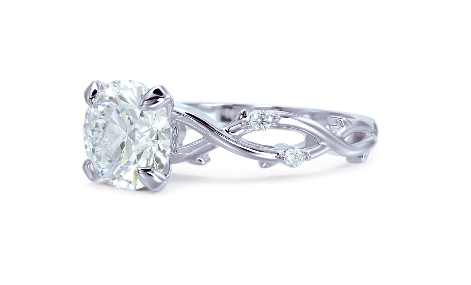 Florena – годежен пръстен с кръгъл диамант 1 ct и флорален усукан дизайн в 14К бяло злато