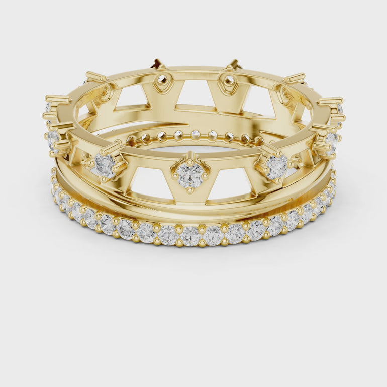 Imperia – диамантени брачни халки с коронен дизайн и внушителен блясък в 14К жълто злато