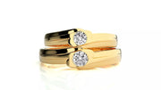 Nexus – брачни халки с инкрустиран диамант и модерен обков в 14К жълто злато