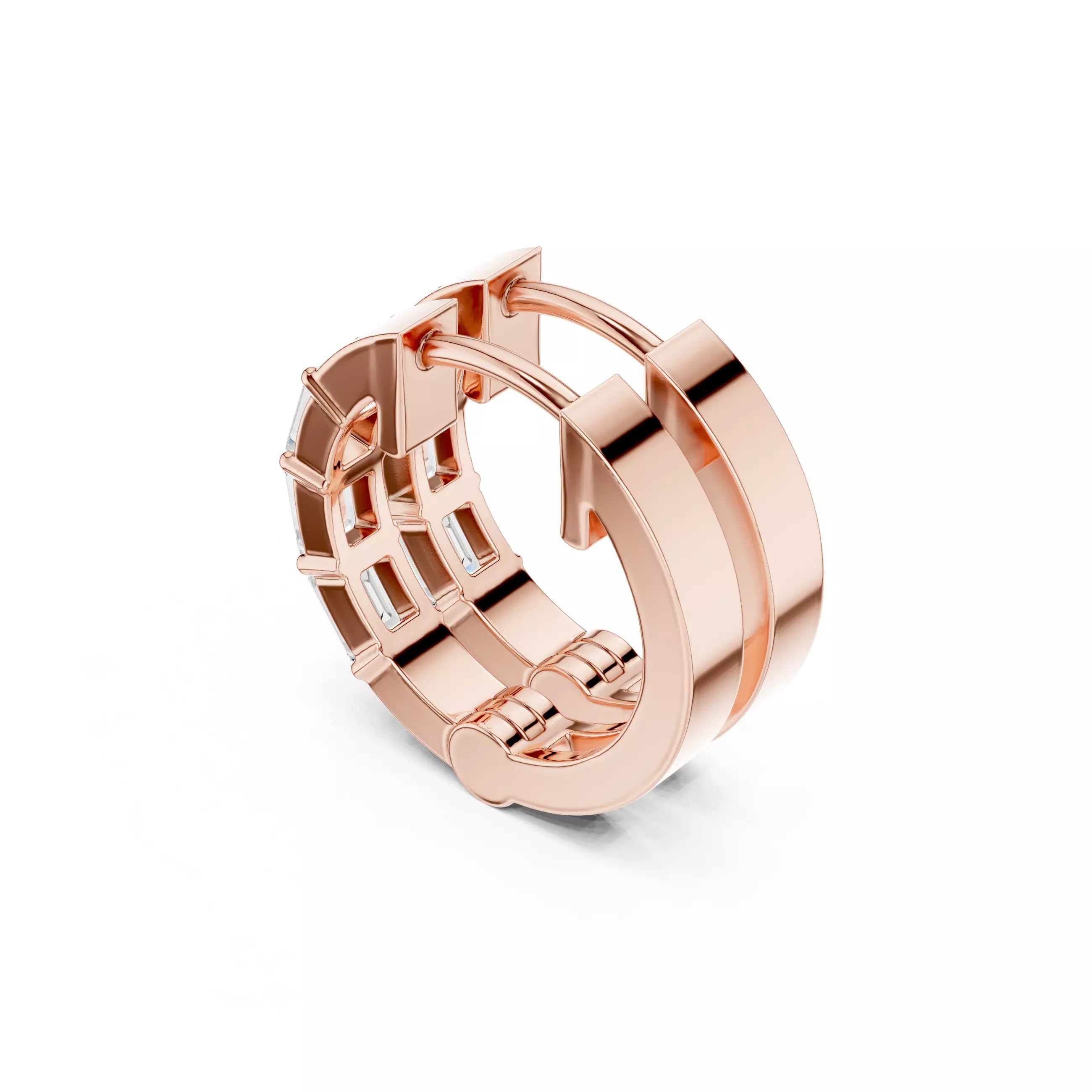 "Правоъгълните диаманти създават ясен ритъм от светлина, който се разгръща при всяко движение. Блясъкът е концентриран и дълбок, а линията от камъни води погледа с чиста геометрия."