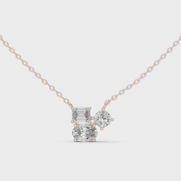 Trilume – колие с диаманти микс шлифовки Oval Emerald Cushion от 14K розово злато
