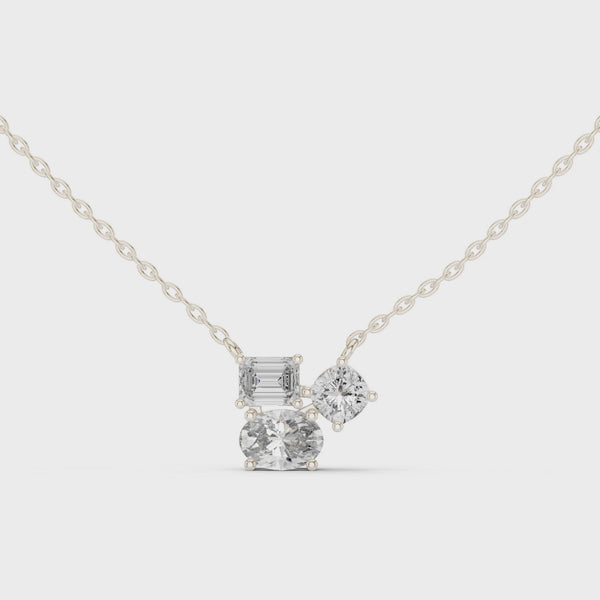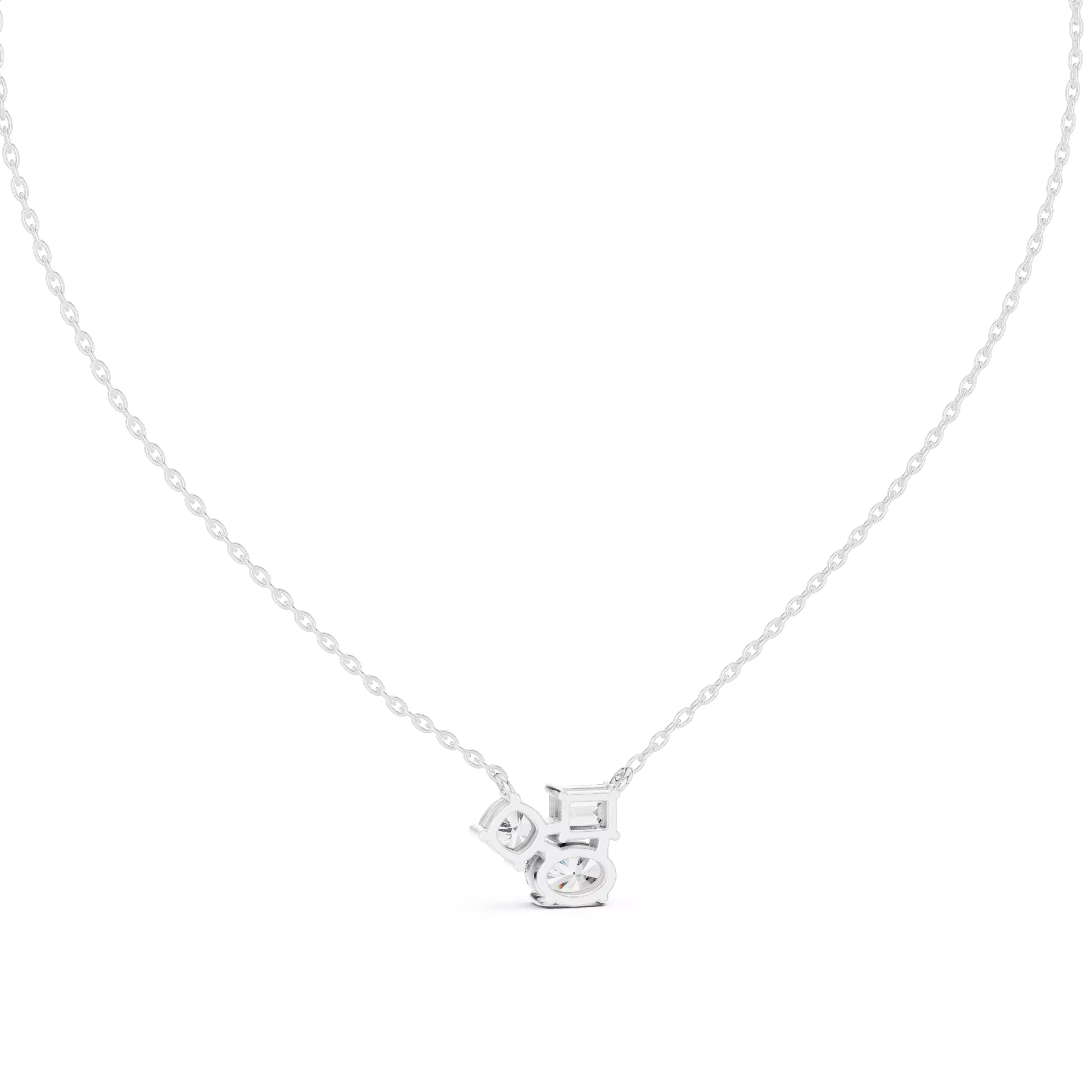 Trilume – колие с диаманти микс шлифовки Oval Emerald Cushion от 14K бяло злато