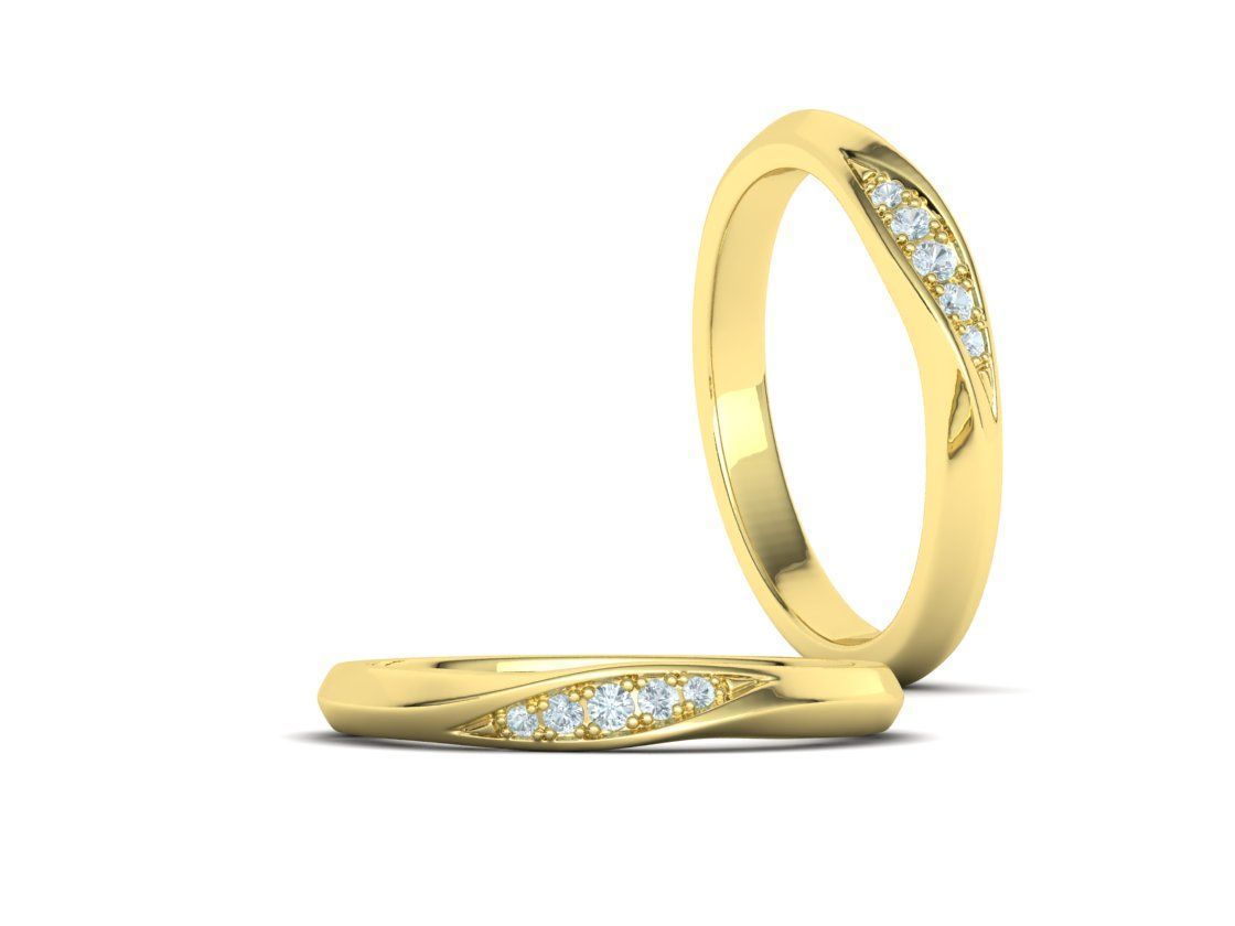 Unda – брачни халки с диаманти и елегантна вълнообразна линия в 14К жълто злато